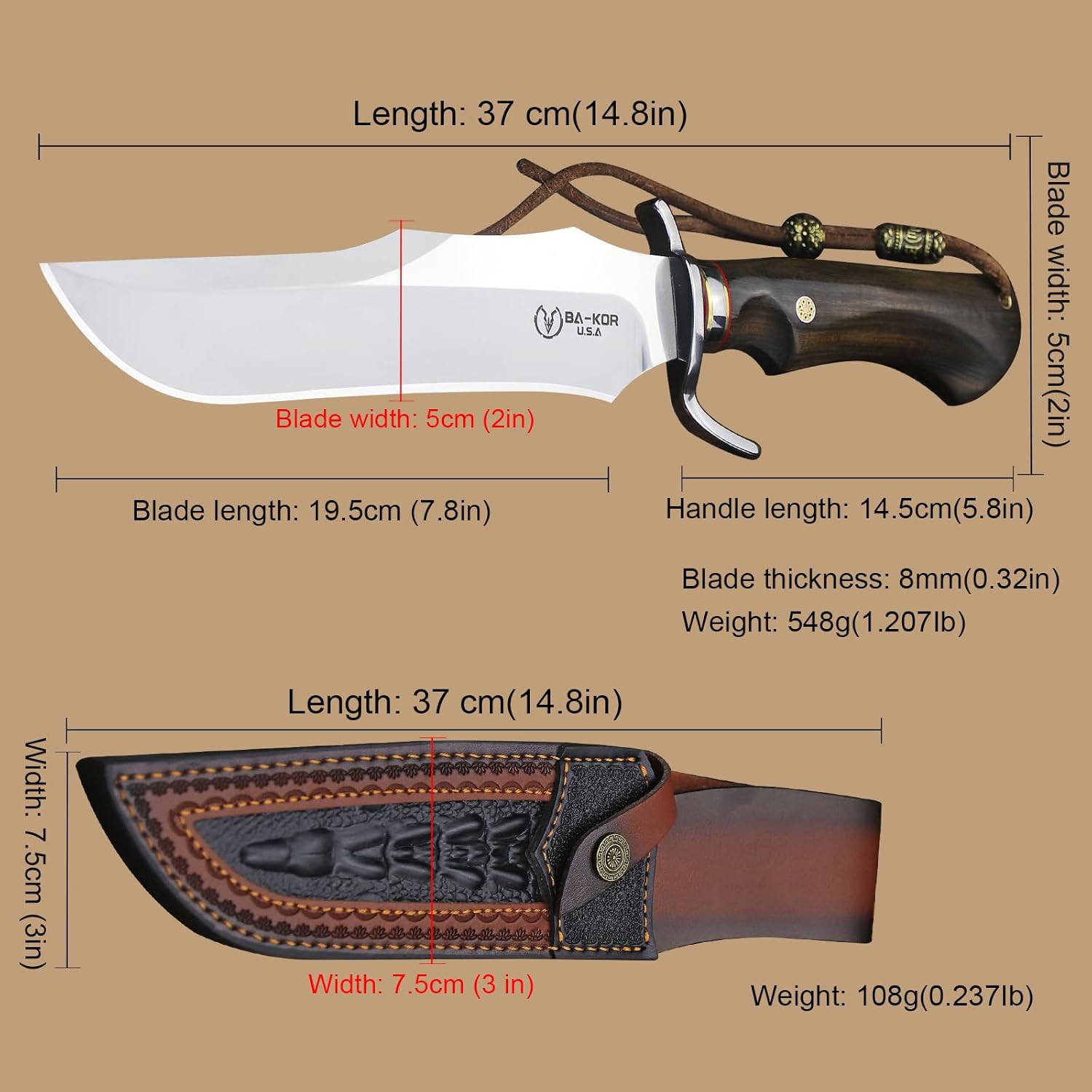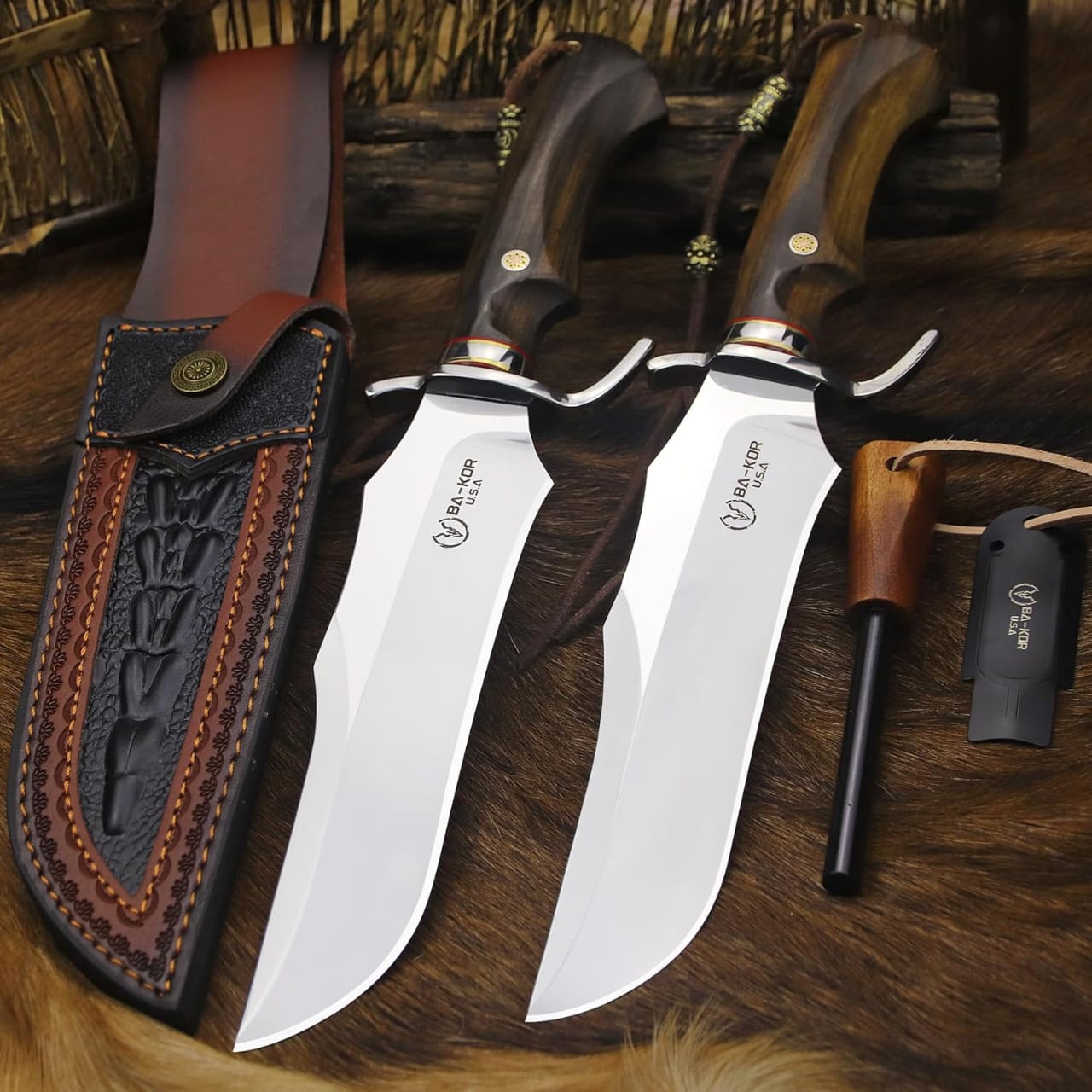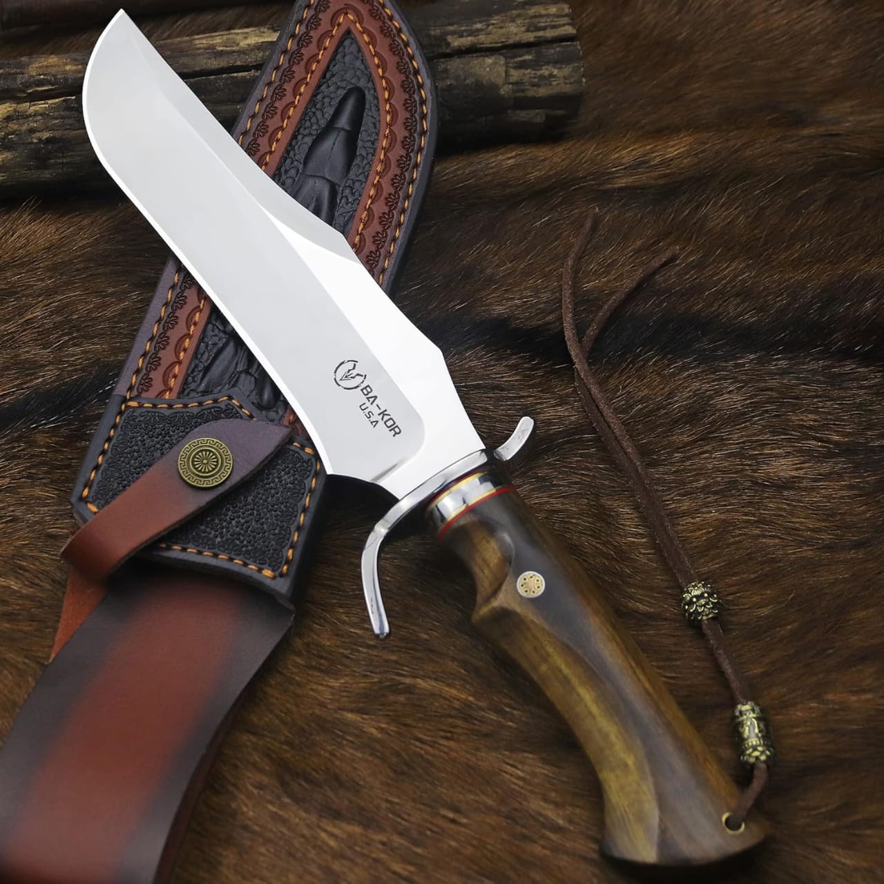BA-KOR Full Tang Bowie Knife 14.8" with Sandalwood Handle – Hunting Gear