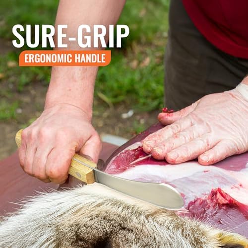 Razor-sharp curved blade for effortless skinning and fleshing
