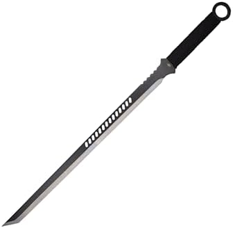 The Black Satin Tanto Sword is a striking fusion of modern tactical styling and fantasy-inspired craftsmanship. Designed for collectors, outdoor enthusiasts, and blade aficionados, this full tang sword set delivers durability, balance, and visual impact—complete with two matching throwing knives for a complete edge weapon system.