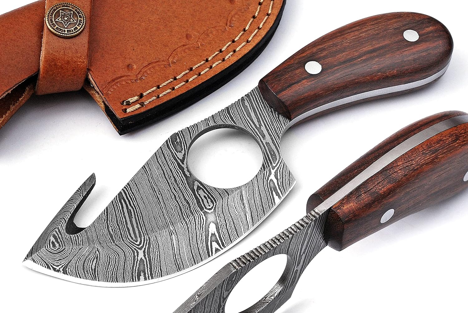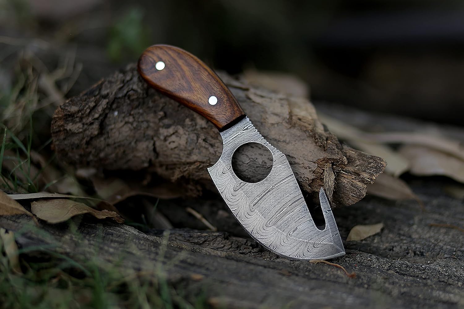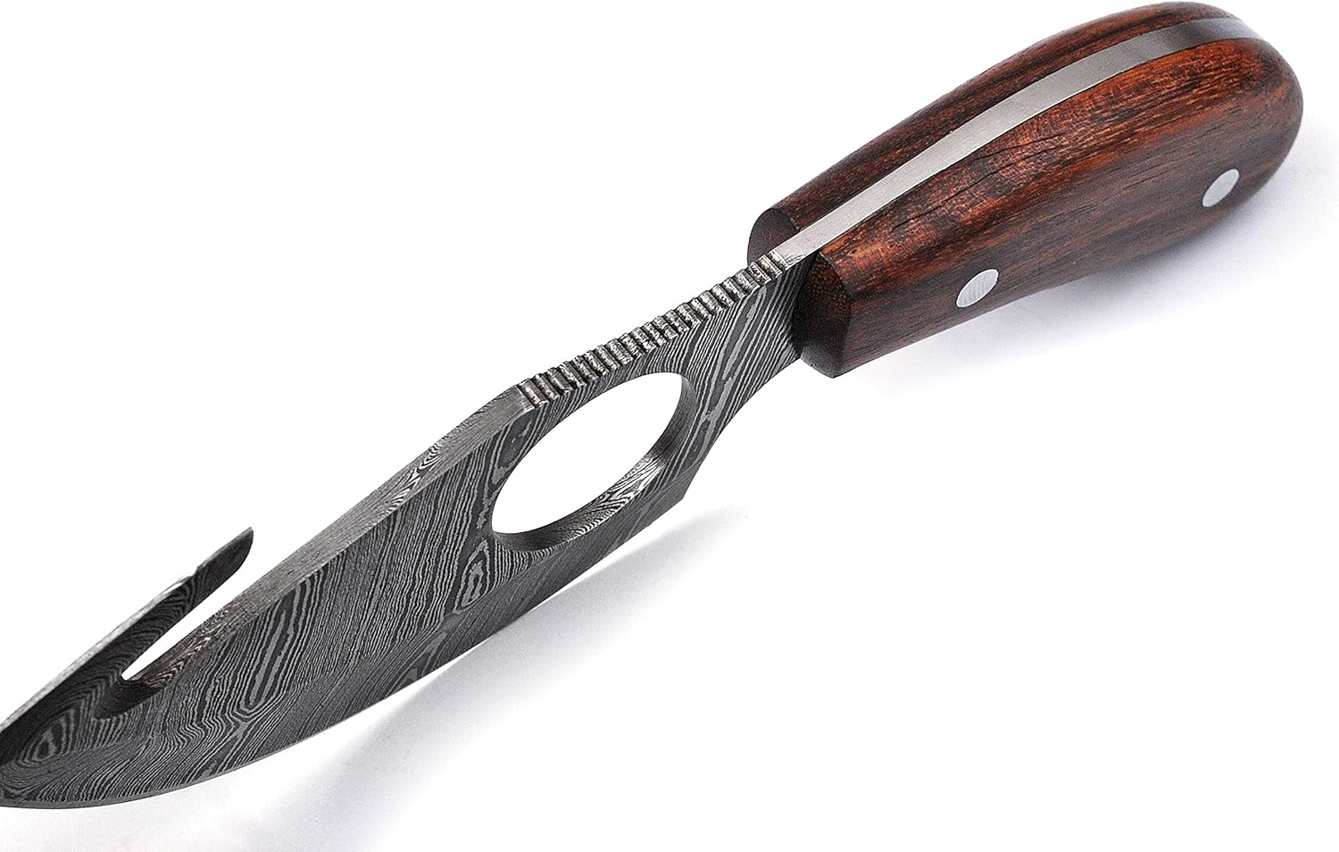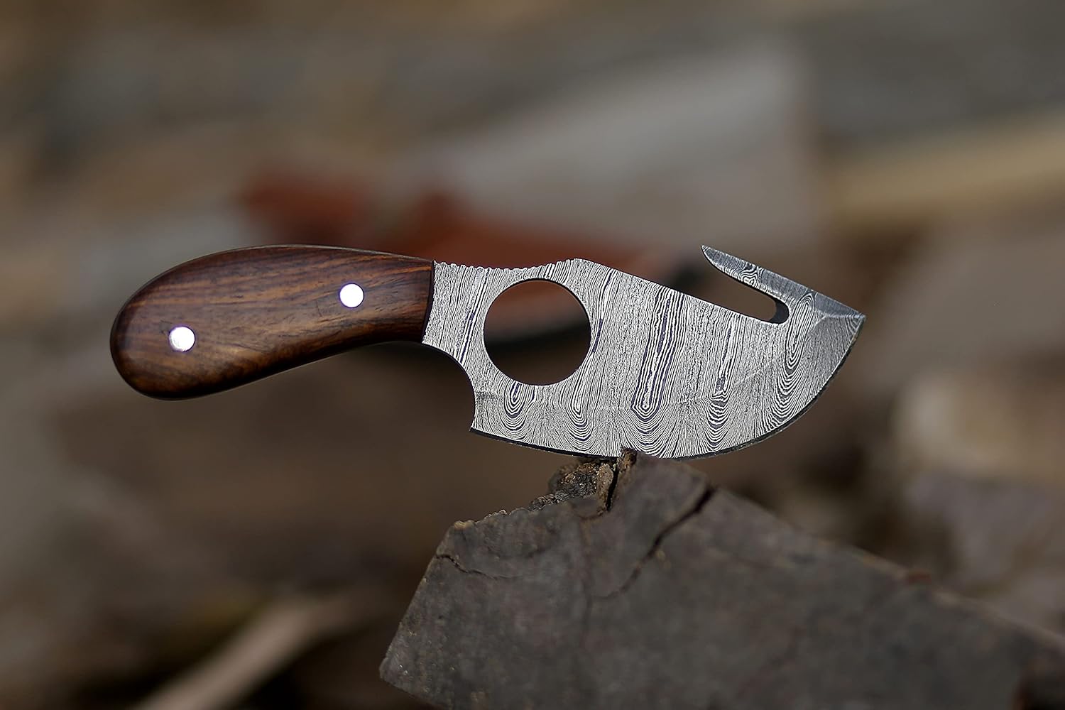 Sharp Damascus blade ensures smooth, precise cuts for skinning and hunting