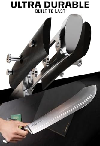 The Dalstrong Gladiator Series 14-Inch Butcher Knife is crafted with premium high-carbon German steel and backed by rigorous quality control. Trusted by thousands of chefs and home cooks, this high carbon steel knife ensures durability, precision, and long-lasting performance for all meat preparation tasks.