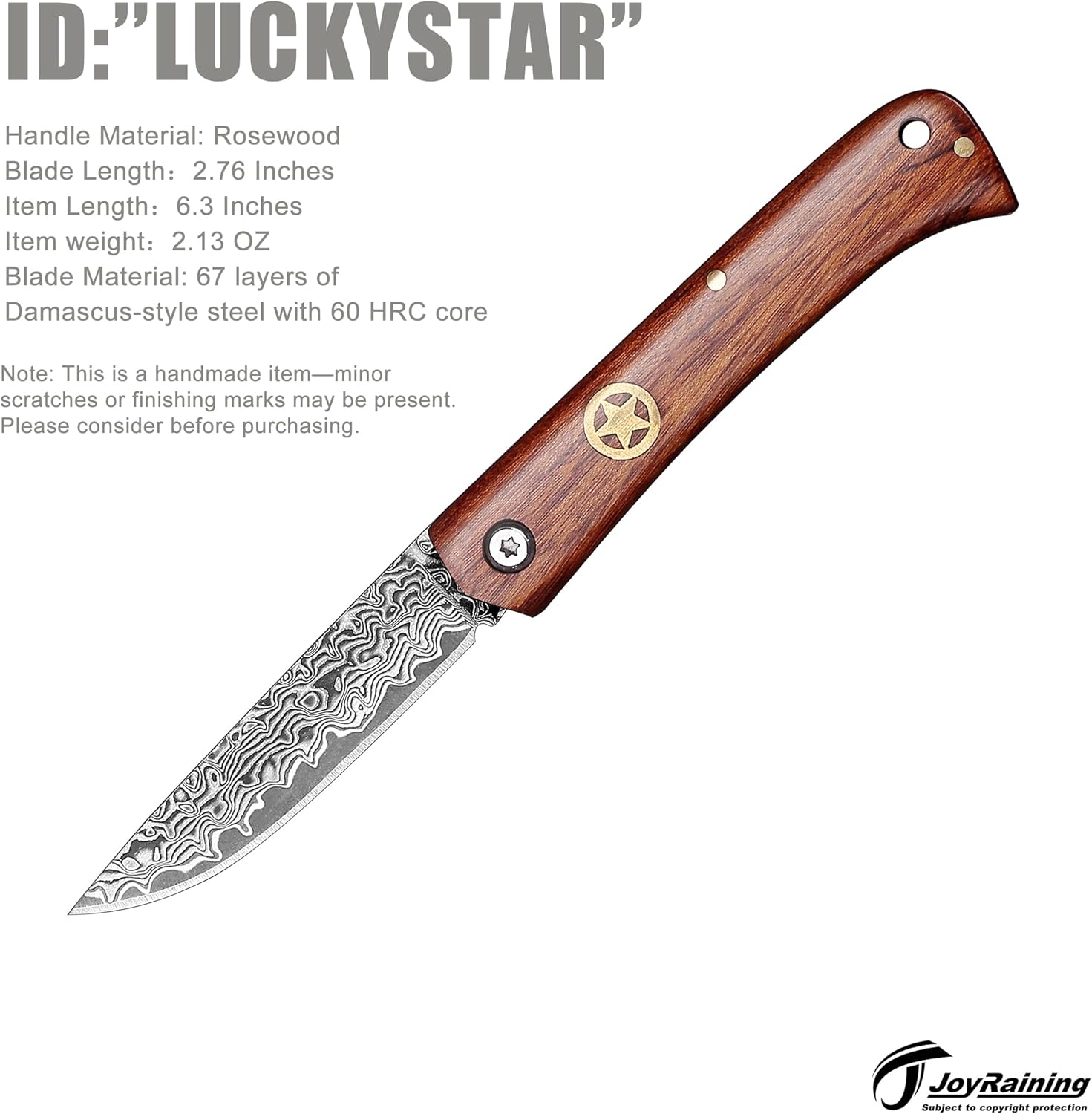 Handle can be wiped with a damp cloth to maintain wood quality