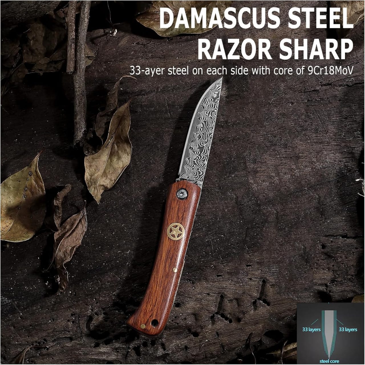 Handcrafted 67-layer Damascus steel blade for style and durability