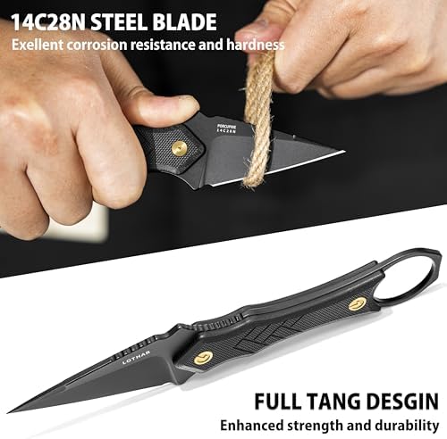 This small fixed blade neck knife features a high-quality 14C28N steel blade for precision cutting, exceptional strength, and superior edge retention. Its ergonomic G10 handle and full tang construction make it a versatile companion for camping, hiking, EDC, and survival situations for both men and women.