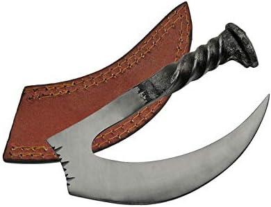 Clean the blade after each use and dry thoroughly to prevent rust. Apply a light coat of oil periodically to maintain sharpness and corrosion resistance. Store securely in the leather sheath when not in use. Avoid prolonged exposure to moisture.