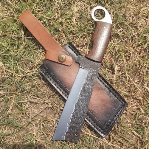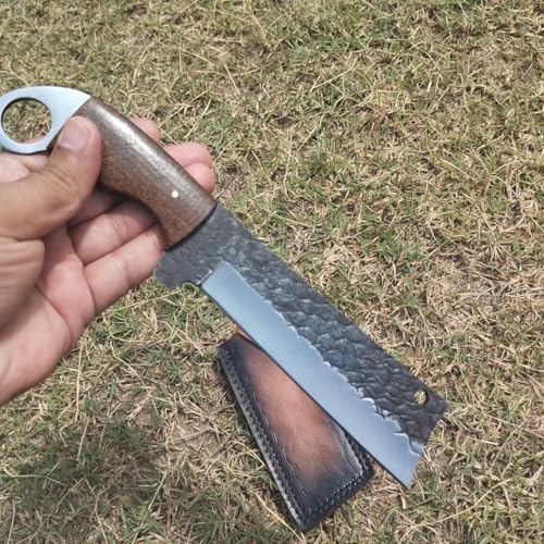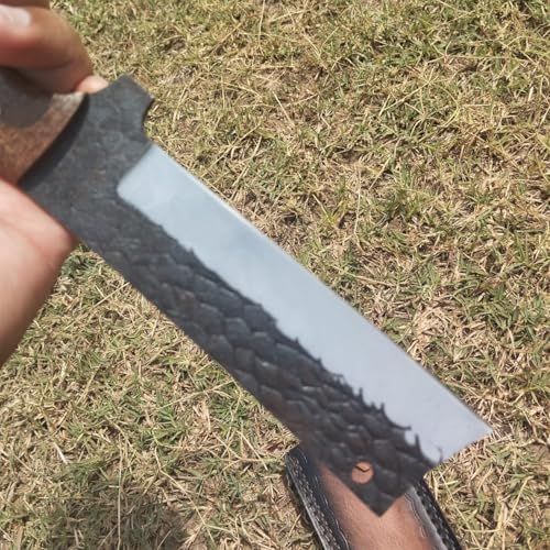Every knife is individually crafted with attention to detail. The hammered rasp steel blade not only strengthens the knife but also gives it a distinctive, rugged look. Its combination of full-tang construction, ergonomic handle, and handcrafted leather sheath makes it a high-quality, collectible, and functional outdoor tool.