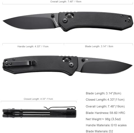 This D2 steel folding pocket knife combines premium craftsmanship with everyday versatility. Featuring a 3.14" drop point blade, G10 handle scales, and a smooth cross-bar axis lock, it delivers reliable cutting performance for camping, hiking, survival, and daily carry tasks for men and women alike.