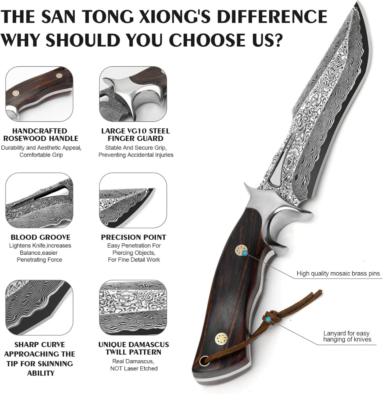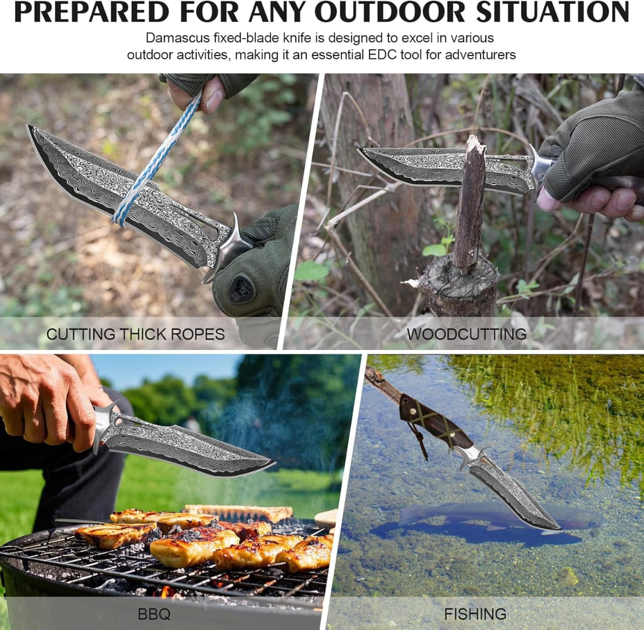 🔹 Recommended Uses: Bushcrafting, Camping, Hunting, Hiking, Skinning, Fishing, Mincing, Peeling