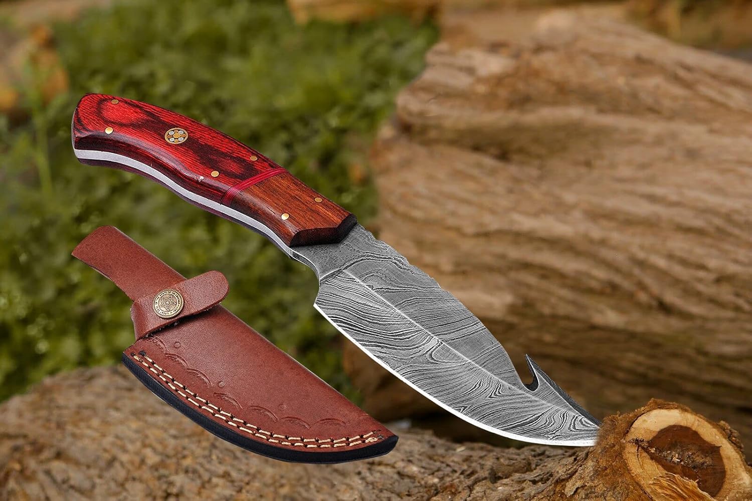 Razor-sharp Damascus blade ensures clean, effortless cutting and fieldwork.