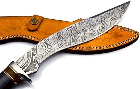 This Damascus kukri knife is a perfect blend of craftsmanship and durability, designed for hunting, bushcraft, survival, and outdoor tasks. Hand-forged with 1095 & 15N20 high and low carbon steel, it features 224 Damascus layers, a razor-sharp convex blade, and a solid cowhide leather sheath for secure belt carry.