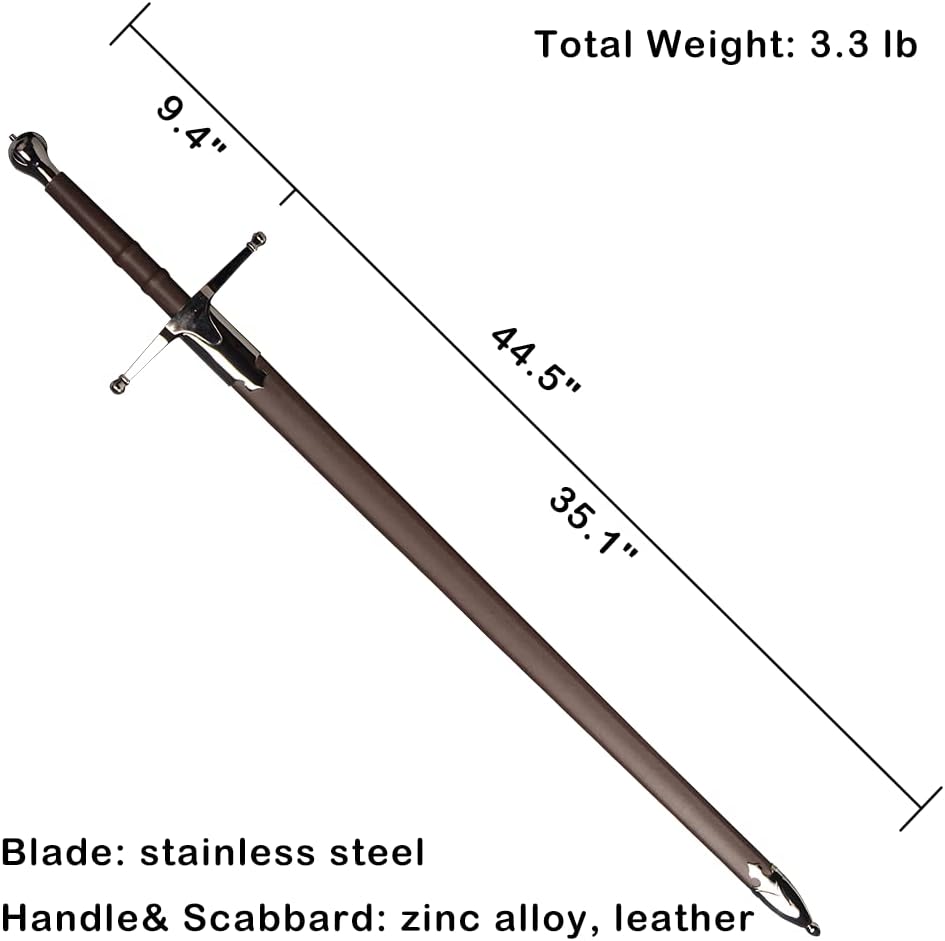 🖐️ Handle and scabbard crafted from zinc alloy and leather for authentic appearance