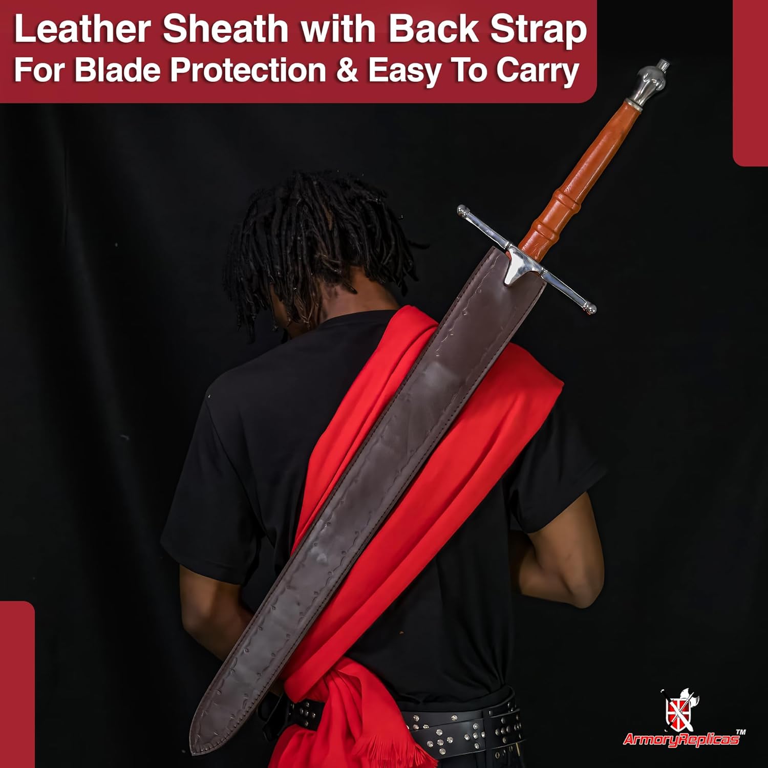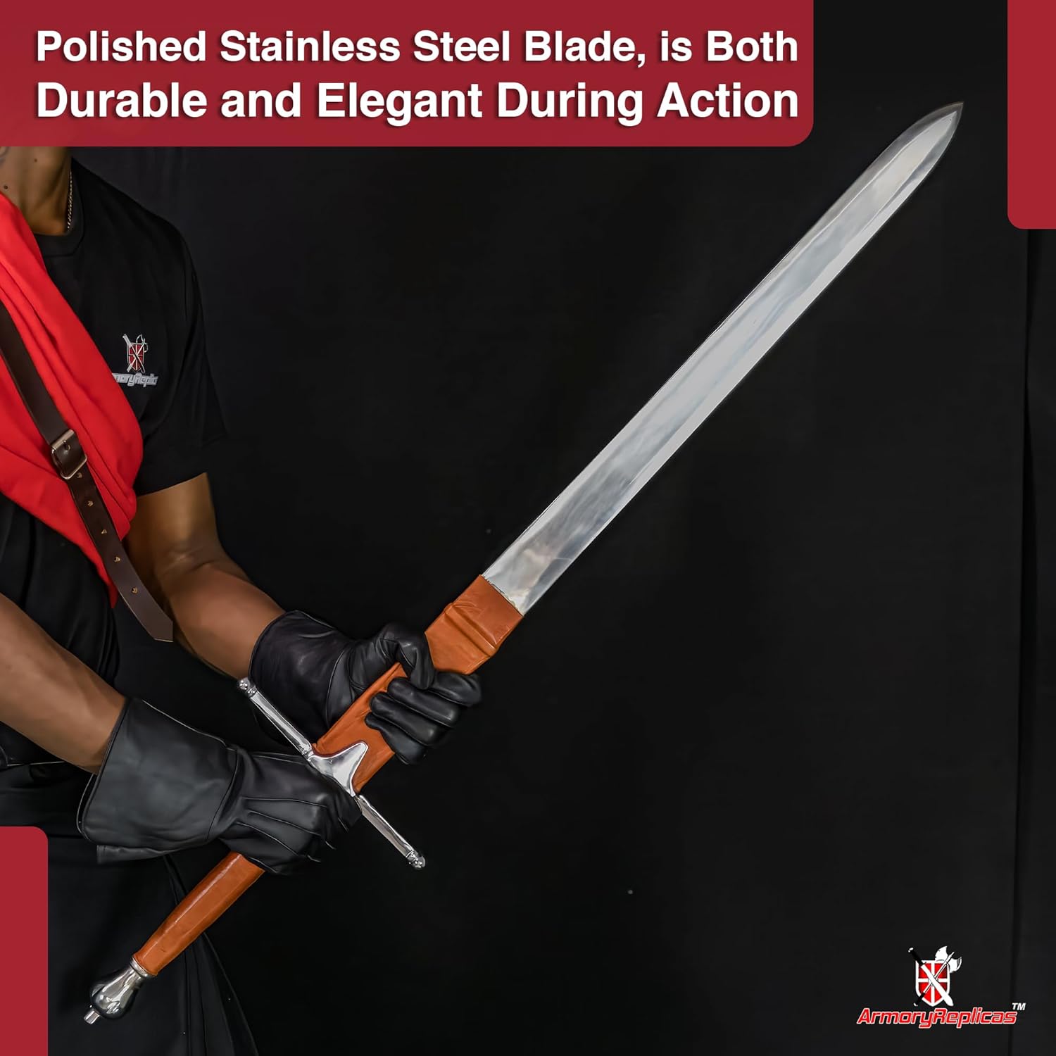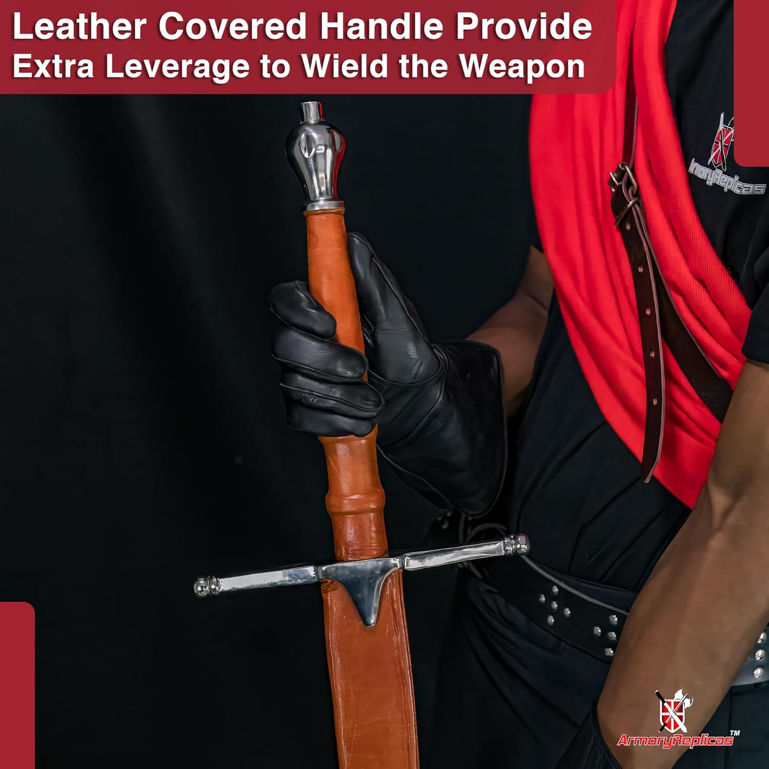 This sword offers the perfect combination of historical accuracy, durability, and display appeal. Its ergonomic leather handle and balanced design allow for realistic handling, making it ideal for collectors, reenactors, cosplay, or as a standout centerpiece in any sword collection.