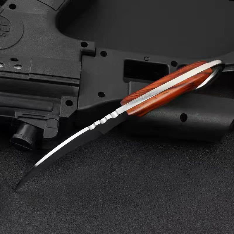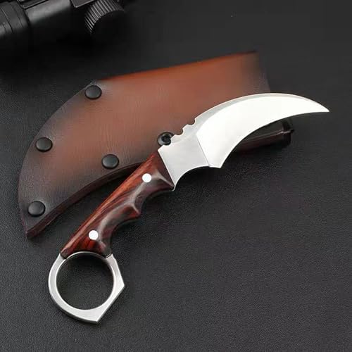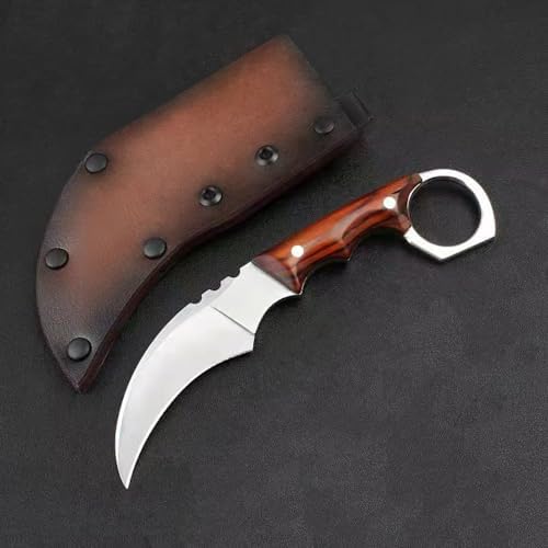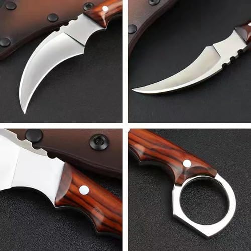 The Fixed Blade Knife with Sheath combines durability, precision, and elegance for outdoor enthusiasts. Featuring a high-hardness D2 steel claw blade and a resilient sandalwood handle, this knife is designed for camping, hunting, and wilderness survival. Its included cowhide sheath ensures safety and portability, making it an essential tool for adventurers.
