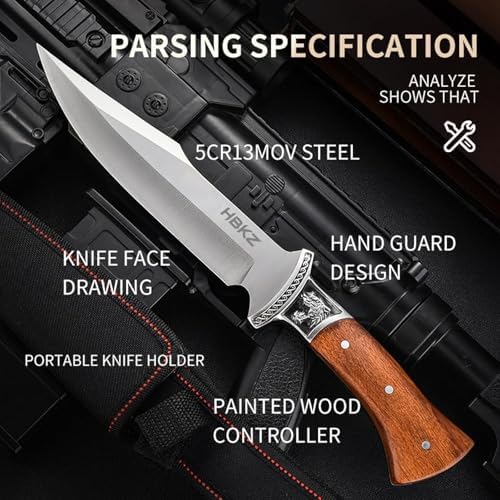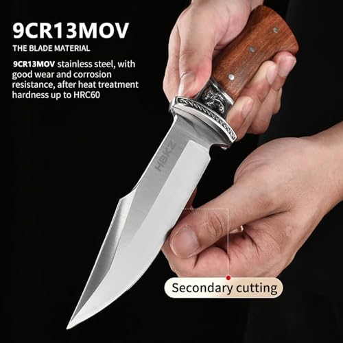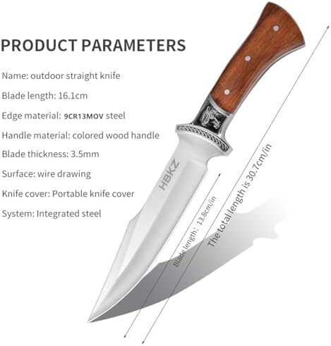The Outdoor Straight Knife is a premium fixed blade hunting knife crafted for serious hunters, campers, and bushcraft enthusiasts. Featuring a 6.34-inch 9CR18MOV stainless steel blade, full tang construction, and ergonomic wood handle, this knife combines durability, precision, and reliability for all outdoor cutting tasks.