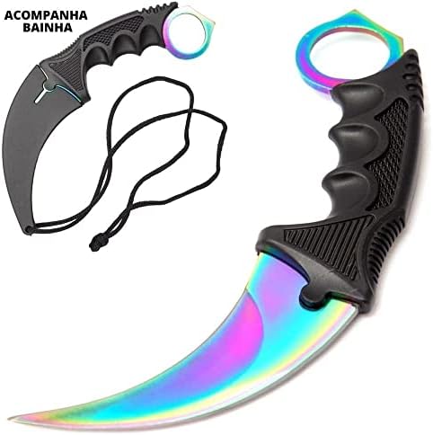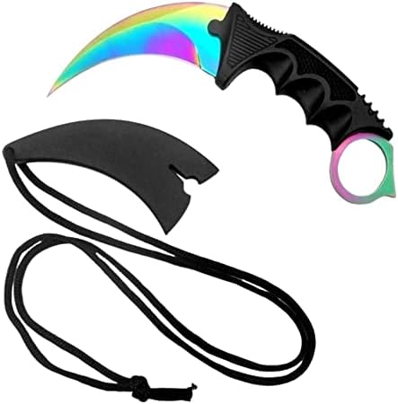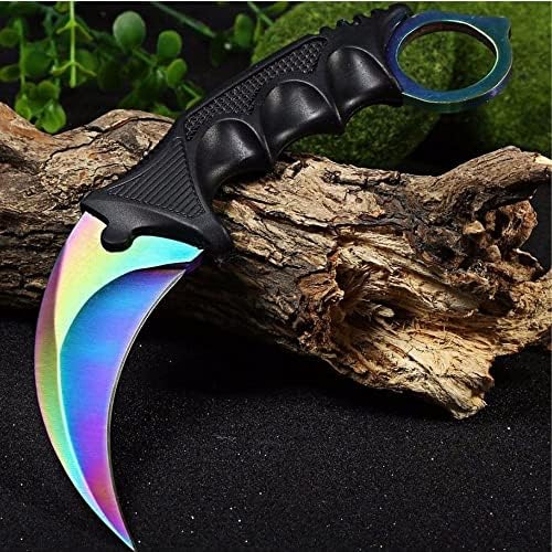 The Fixed Blade Karambit Spectrum combines striking aesthetics with reliable performance. Featuring a rainbow-finished stainless steel blade and ergonomic black ABS handle, this knife is built for hunting, outdoor adventures, and everyday carry, delivering both functionality and style in one vibrant package.