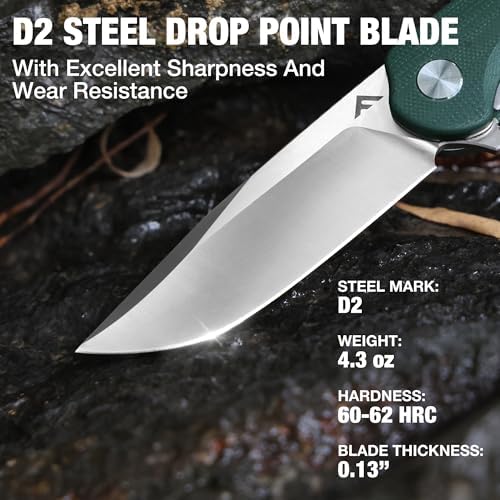 3.3-inch D2 steel blade with HRC 60-62 for sharpness and corrosion resistance