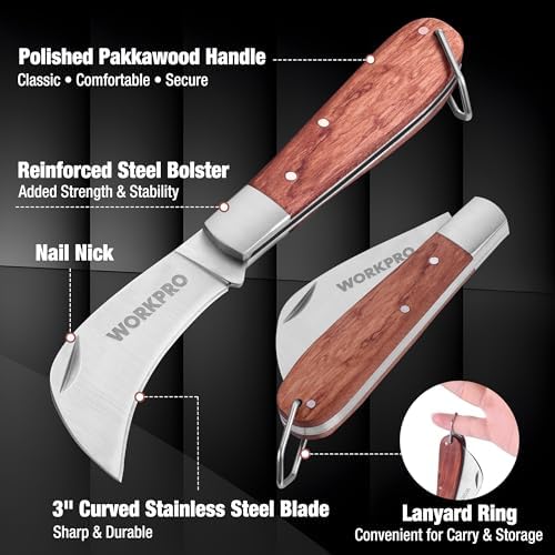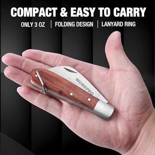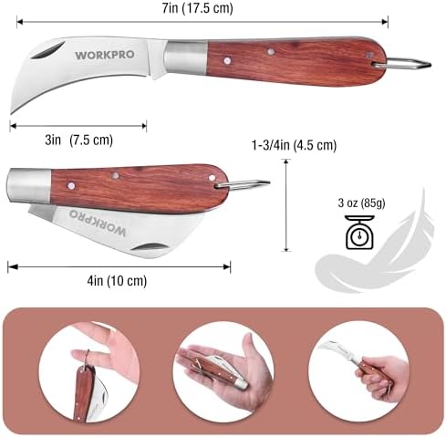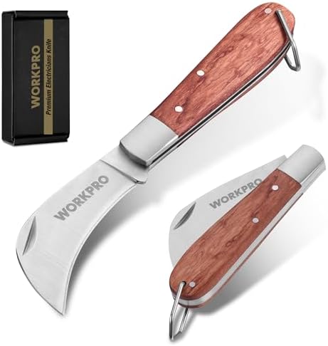 The Utility Knife with a 3-inch hawk bill blade is a premium folding tool designed for electricians, linemen, and outdoor enthusiasts. Combining durable 3Cr13 stainless steel with a polished pakkawood handle, it offers precision cutting, portability, and ergonomic comfort for both professional and everyday use.