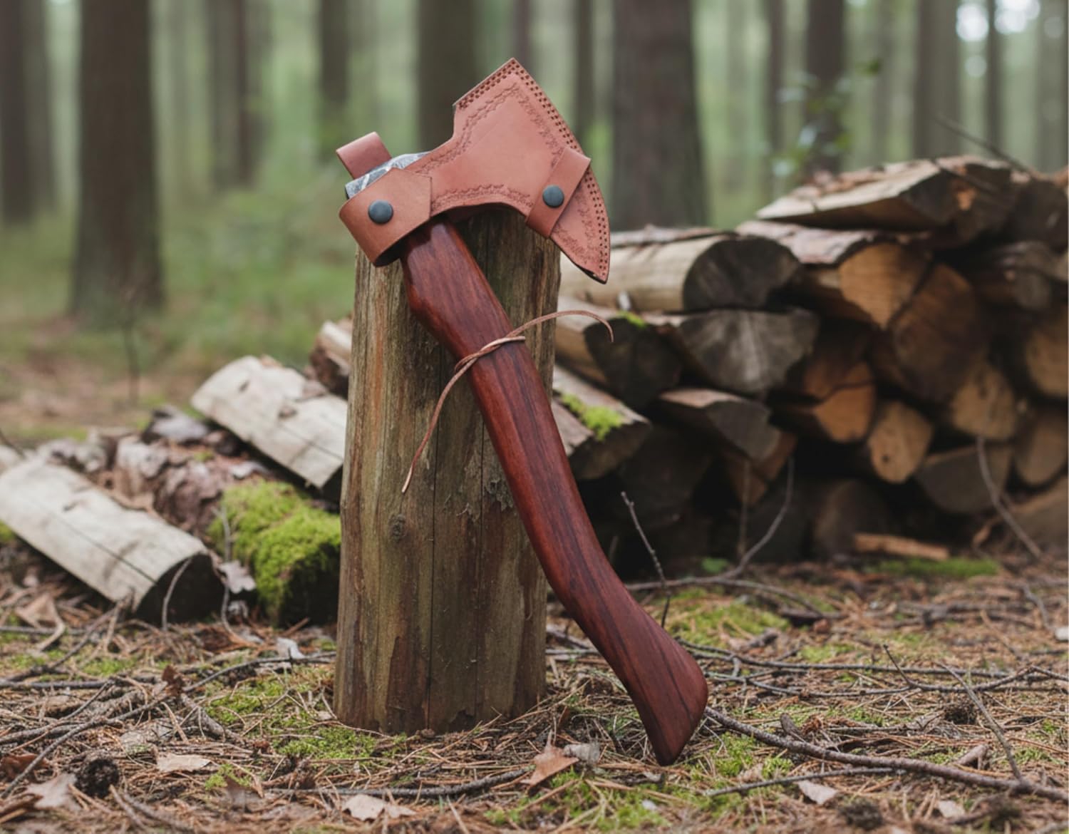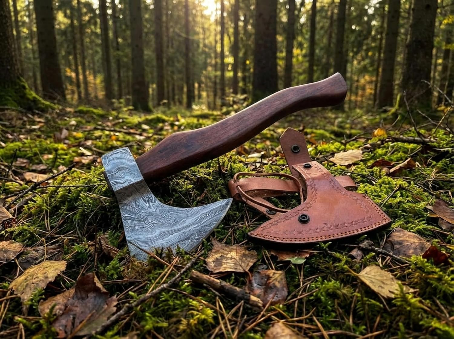 Forge Hide Damascus Axe – Premium Handmade Viking Axe for Outdoors 🔥🪓