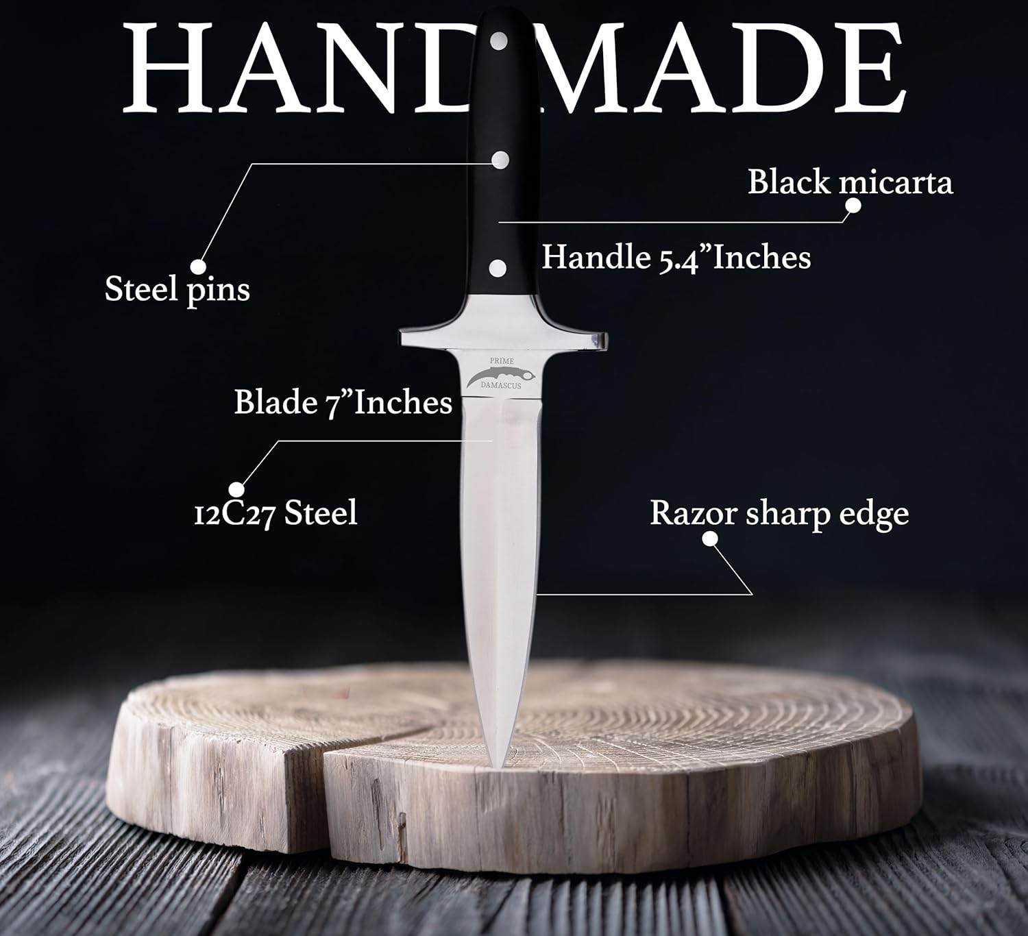 The Full Tang Dagger Knife is expertly crafted for durability, precision, and versatility. Featuring a sharp stainless steel blade, sturdy full tang construction, and premium leather sheath, this knife is ideal for outdoor activities, survival, camping, hunting, and everyday carry.