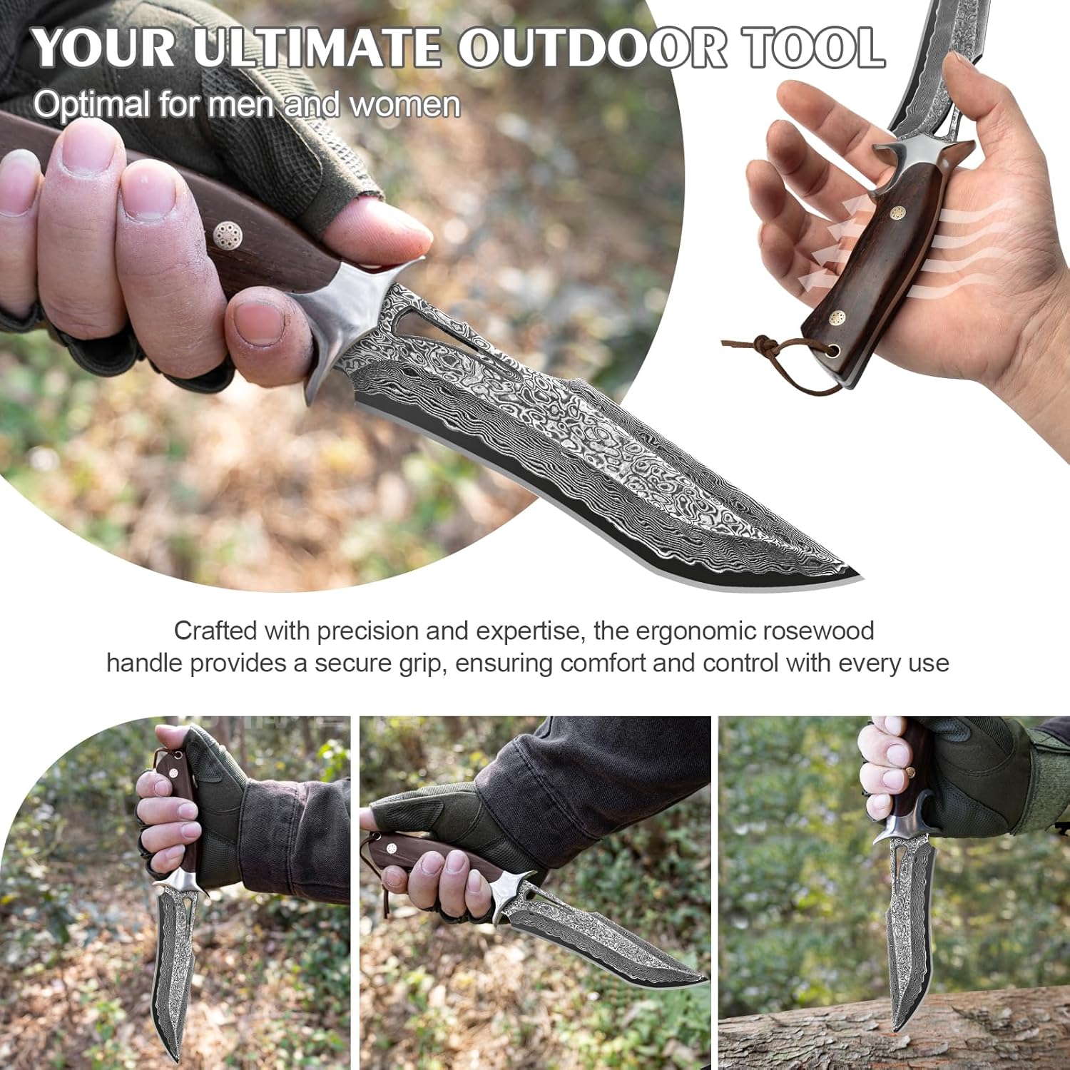 Versatile Knife: Ideal for hunting, camping, survival, fishing, hiking, and outdoor protection. 🏕️