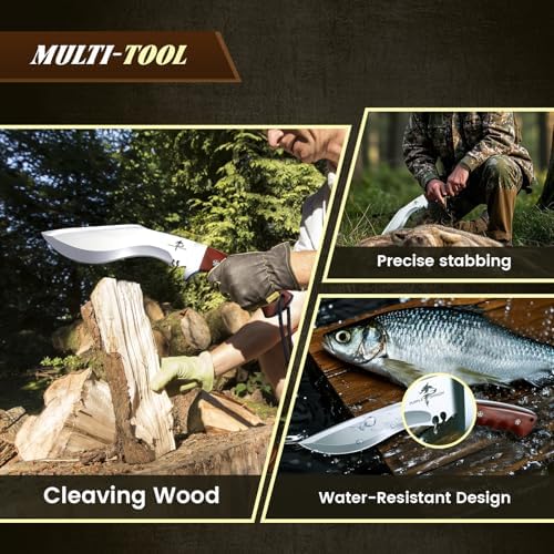 This camping knife is perfect for outdoor adventures, including hiking, survival, and bushcraft. Its curved kukri-style blade excels at chopping wood, preparing food, and tackling tough cutting tasks. Lightweight yet powerful, it reduces hand fatigue and ensures precise control in all conditions.