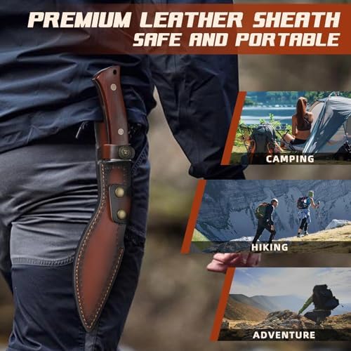 The survival knife offers reliable cutting, chopping, and slicing capabilities for outdoor enthusiasts. Its razor-sharp VG10 steel blade reduces effort during heavy-duty tasks, while the ergonomic handle ensures extended use without fatigue. Perfect for campers, hunters, and adventurers needing a dependable multi-purpose knife.