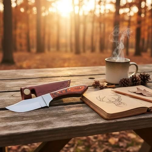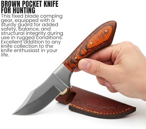 This outdoor hunting knife delivers exceptional precision and control for field dressing, camping, and general outdoor tasks. The ergonomic pakkawood handle provides comfort during prolonged use, while the full tang blade ensures durability and sharpness for survival, cutting, and bushcraft needs.