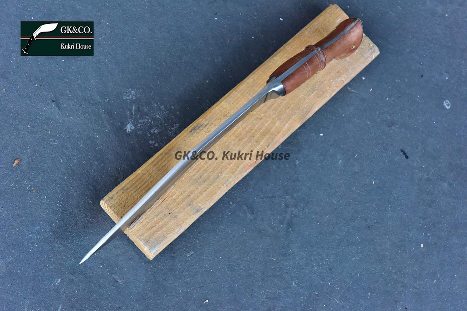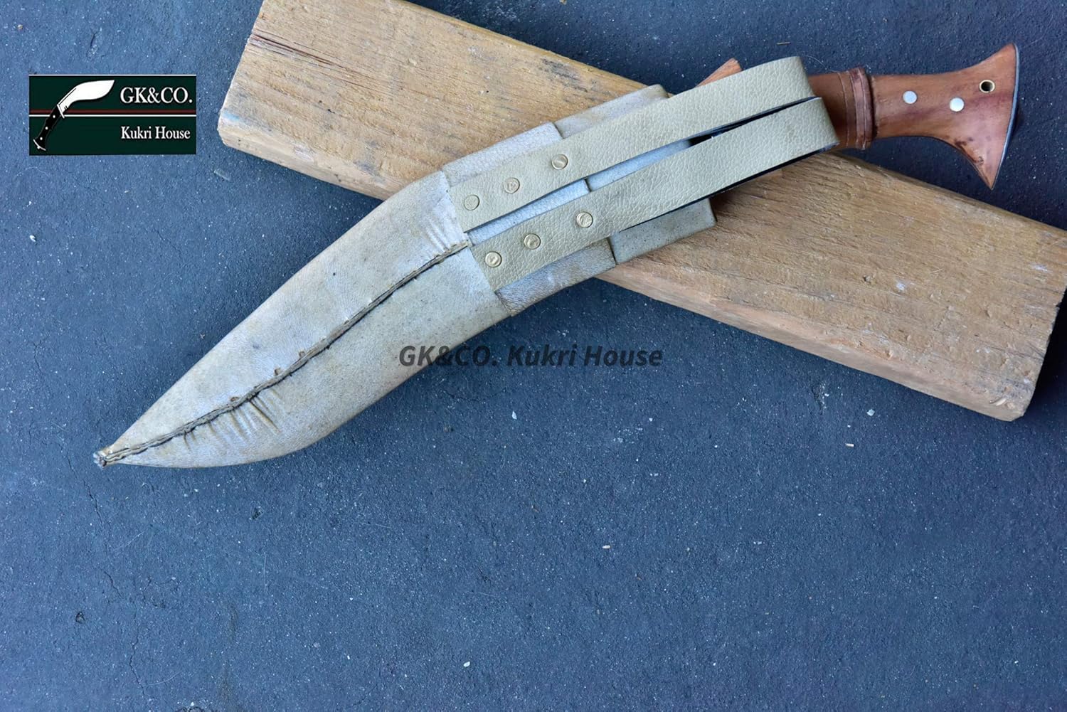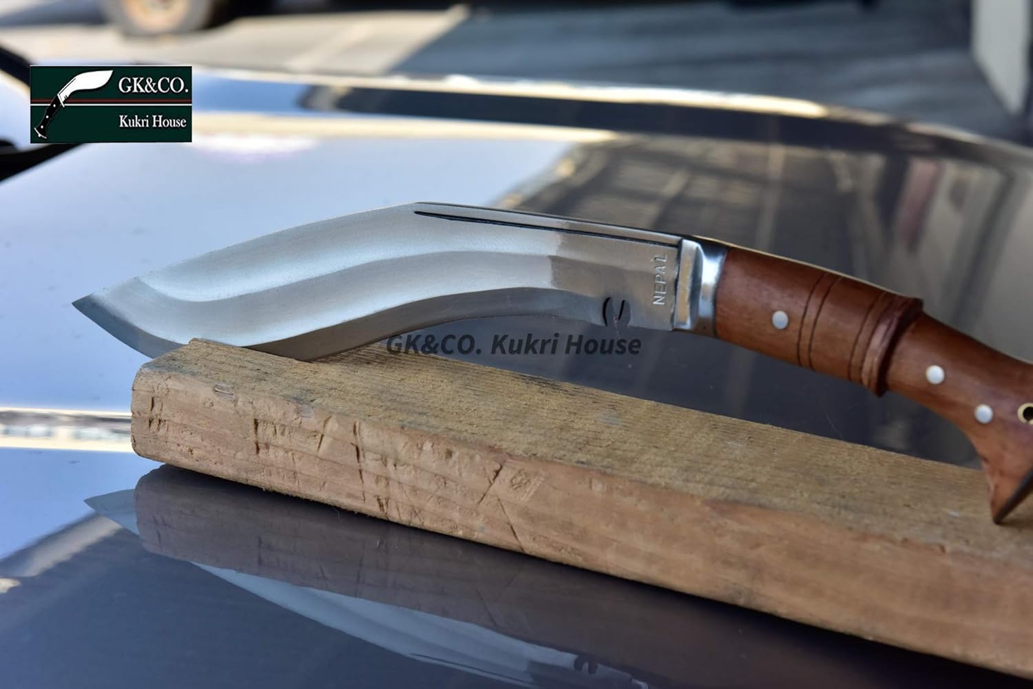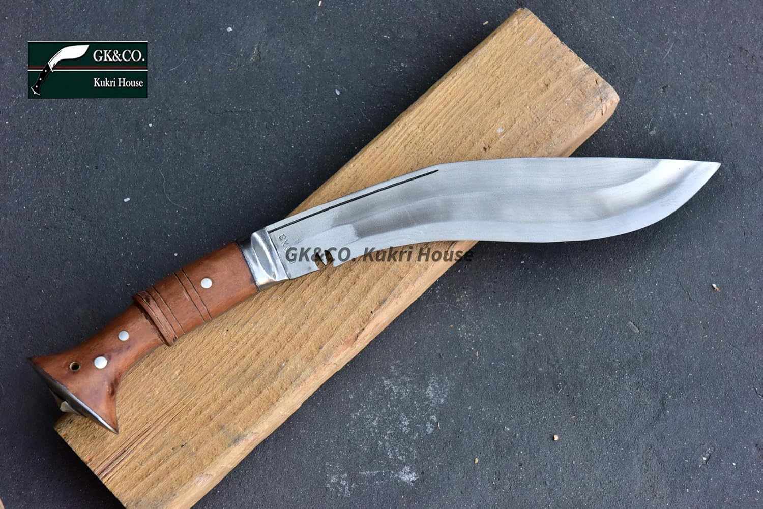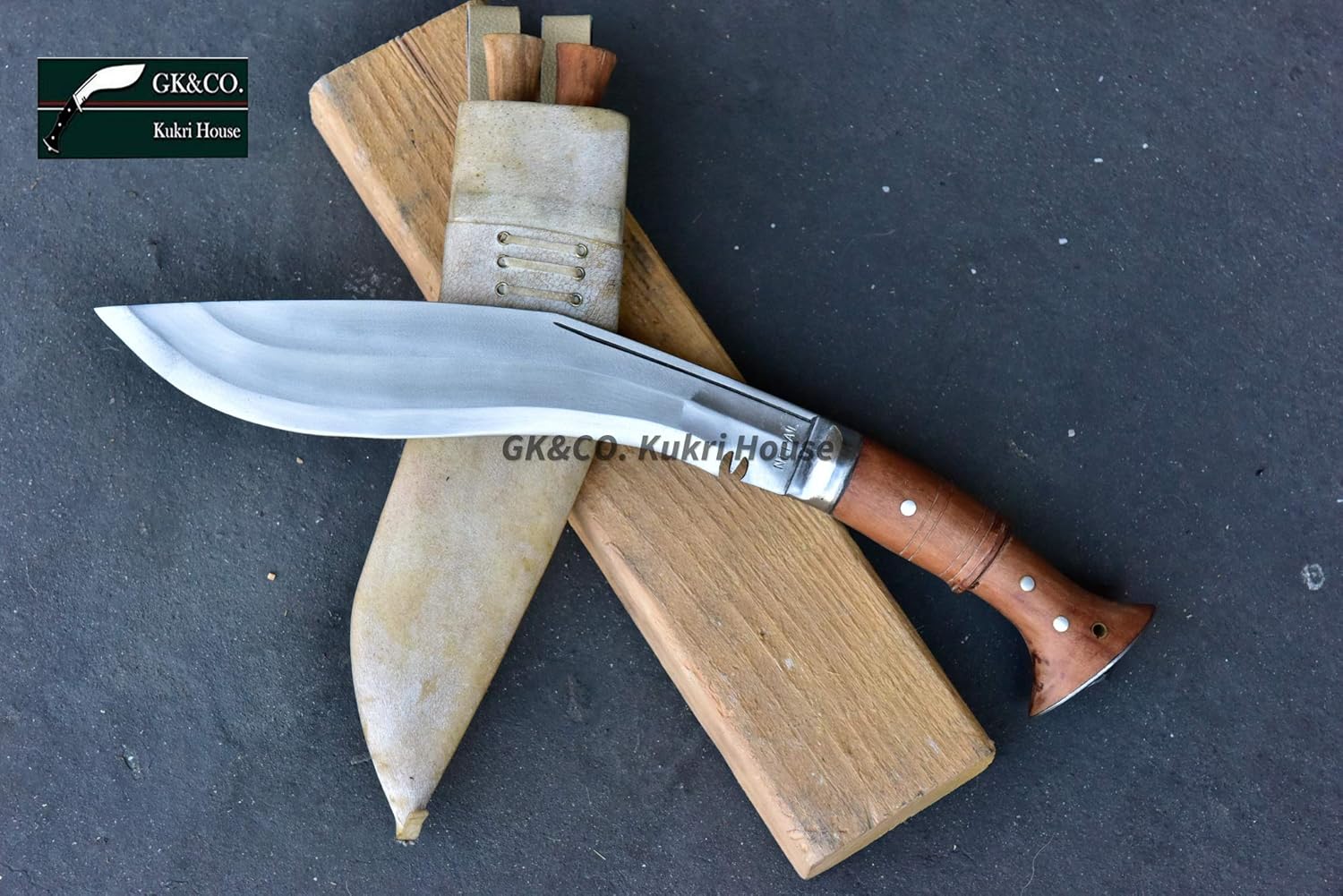 The Genuine Kukri Knife by GK&CO. Kukri House is an officially issued Nepalese blade, crafted in the traditional Gurkha style. This 11-inch handmade kukri features a highly polished carbon steel blade, full tang Sadan wood handle, and includes two small utility knives (Karda & Chakmak), making it ideal for collectors, military enthusiasts, and outdoor adventurers.