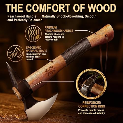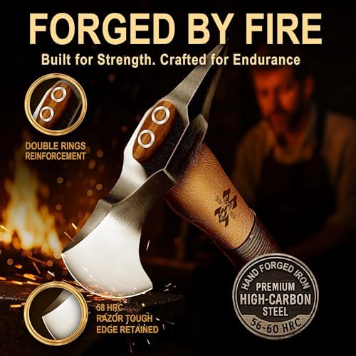 This bushcraft hatchet offers exceptional reliability for hunters, campers, and survivalists. Its sharp, durable blade powers through tough wood with minimal effort, while the ergonomic leather-wrapped handle reduces fatigue during long sessions, giving you confidence on every adventure.