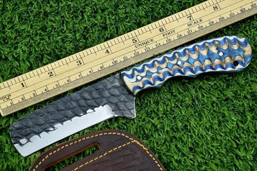 Every knife is individually hand-forged, ensuring a unique Damascus-style pattern and artisan-quality finish. The multicolor engraved handle provides comfort and style, while the high-carbon steel blade offers excellent edge retention and corrosion resistance, ensuring long-lasting performance.