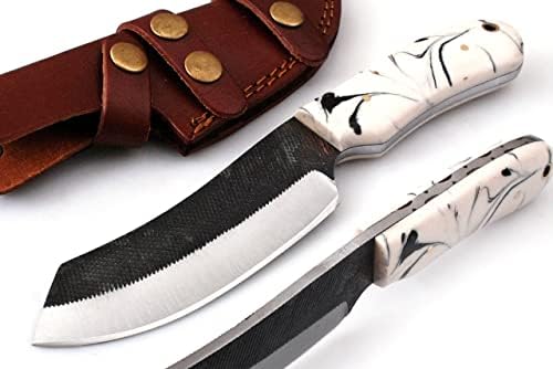 The Hand Forged Cowboy Bull Cutter Knife is a premium bushcraft knife designed for hunters, campers, and outdoor enthusiasts. Featuring a 5-inch carbon steel blade and a durable resin handle, this 9-inch knife delivers exceptional edge retention, sharpness, and long-lasting performance. The included leather sheath with snap fastener ensures safe, convenient carry in all outdoor conditions.