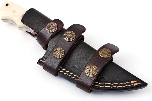 Leather Sheath with Belt Buckle: Durable stitched leather sheath for protection and convenient carry.