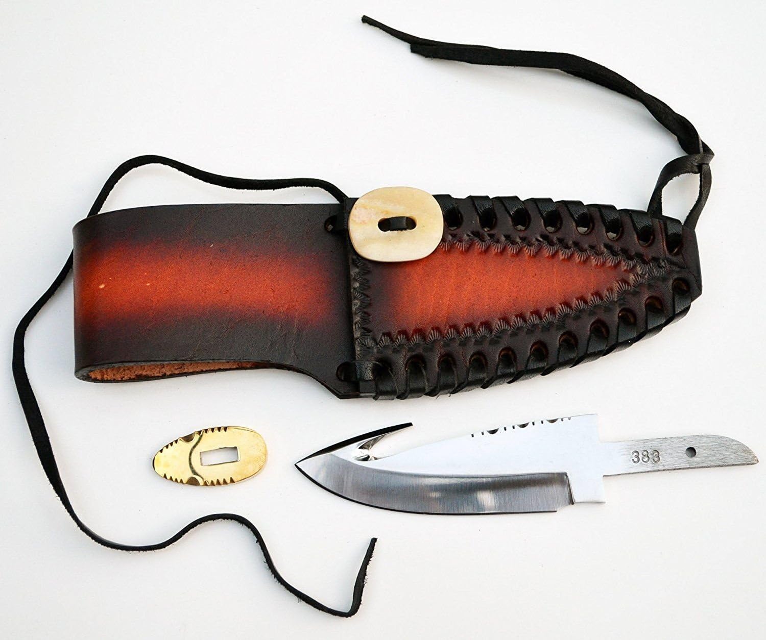 Home Hunting Knives Gut Hook Knives Handcrafted 4″ Guthook Knife Blade with Brass Guard & Sheath Markhor Knives
