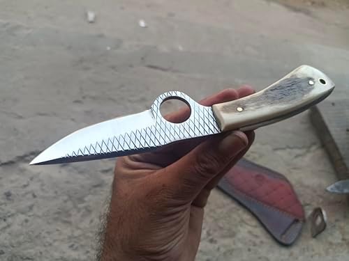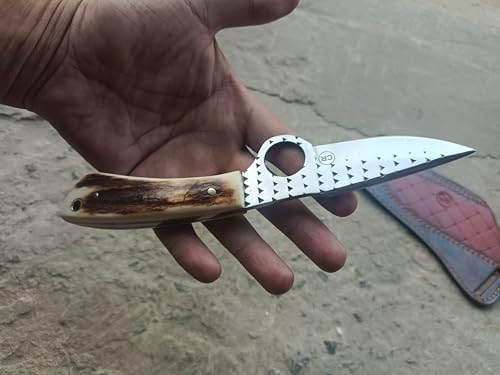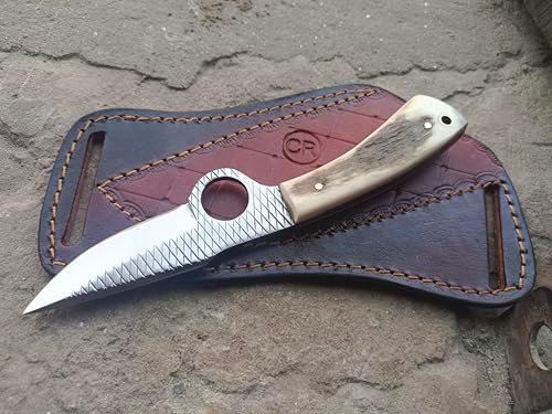 Elevate your outdoor adventures with this handmade bull cutter knife. Featuring a 7-inch overall length and a Farrier rasp steel razor-sharp blade, this fixed blade knife is lightweight, durable, and designed for hunting, bushcraft, camping, and hiking. Its stag handle provides a secure and ergonomic grip for maximum control.