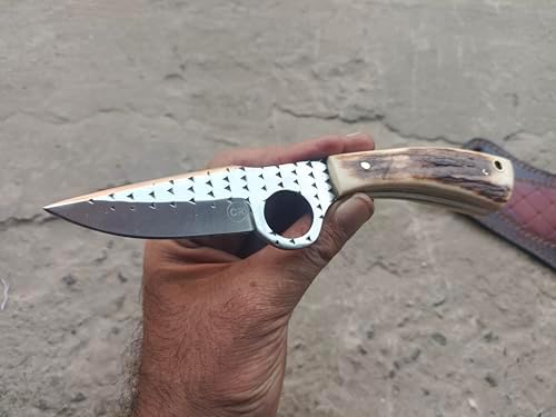 Handmade Bull Cutter Knife with Stag Handle & Leather Sheath | Markhor knives