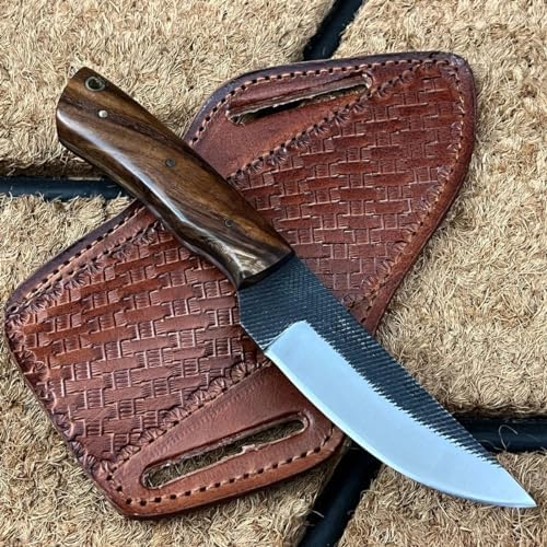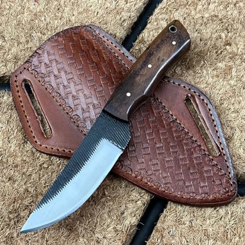 Each knife is handcrafted for precision, durability, and performance. The rasp steel blade ensures long-lasting sharpness, and the skinning-style blade enhances control for detailed cutting. Comes with a premium leather sheath, making it a practical and collectible skinner knife.