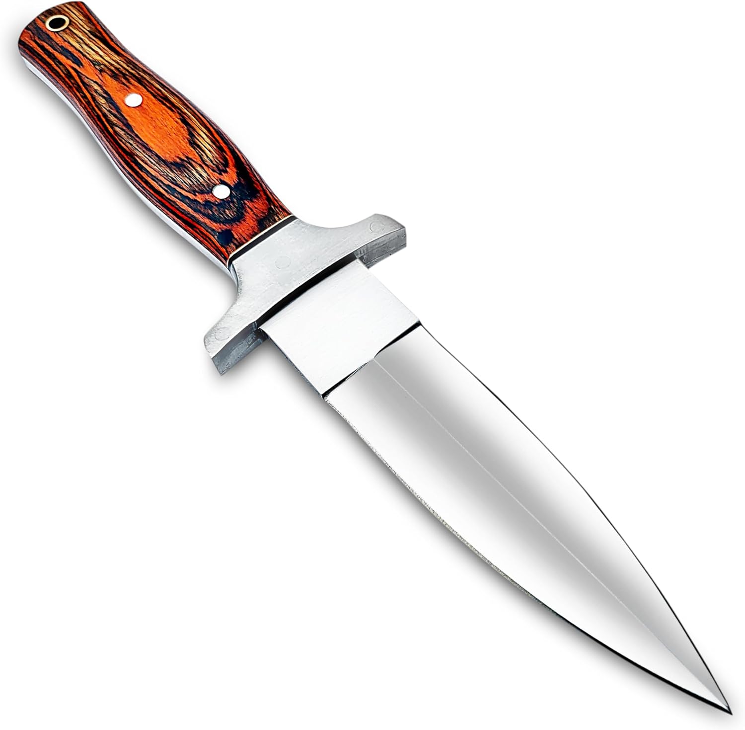 The Handmade D2 Steel Dagger Knife is a versatile, full tang fixed blade designed for hunting, tactical, and outdoor use. With a 10-inch overall length, double-edged D2 steel blade, and ergonomic 5-inch pakkawood handle, this dagger combines precision, durability, and style—perfect for collectors, campers, and survivalists.