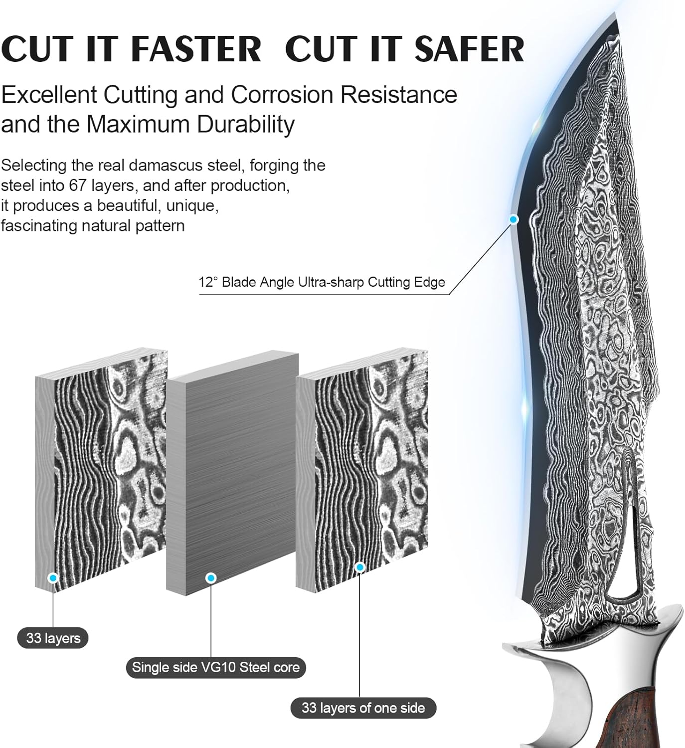 🔥 Exceptional Durability: Crafted from 67-layer real Damascus steel with a razor-sharp VG10 core for long-lasting edge retention.