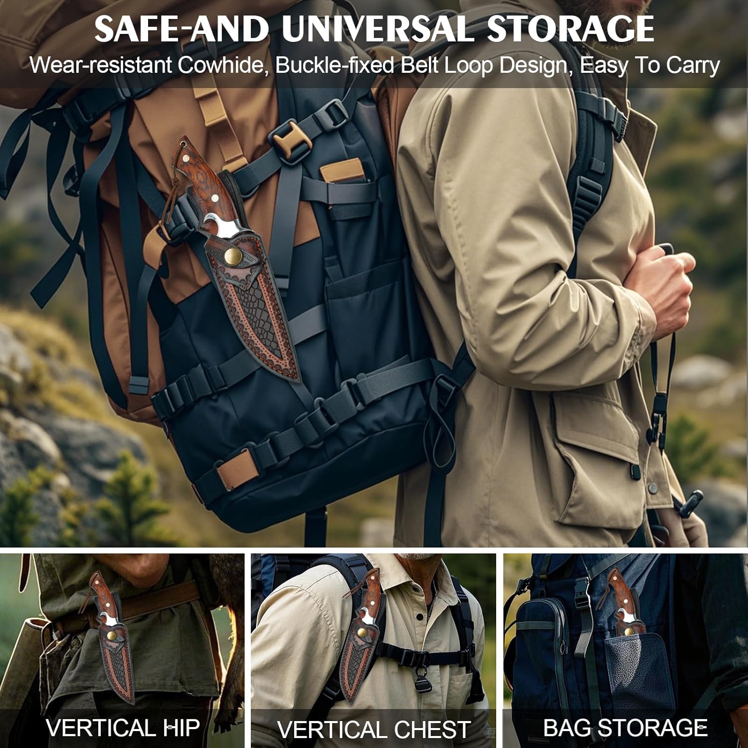 This hunting knife for men is built to perform under extreme outdoor conditions. The VG10 core ensures long-lasting sharpness, while the full-tang construction delivers unmatched strength. Its ergonomic handle minimizes hand fatigue, making it comfortable for extended use during hunting, fishing, camping, or survival tasks.