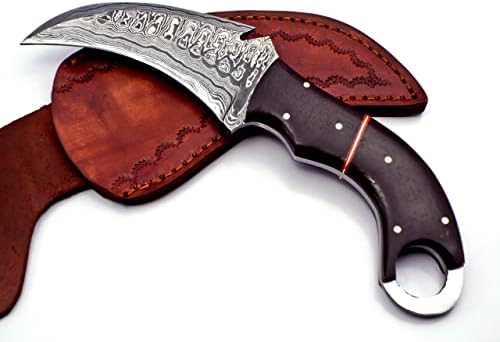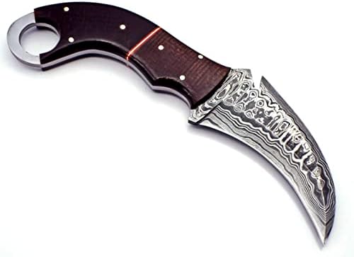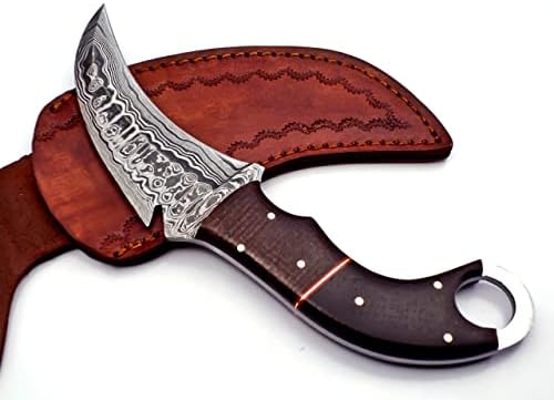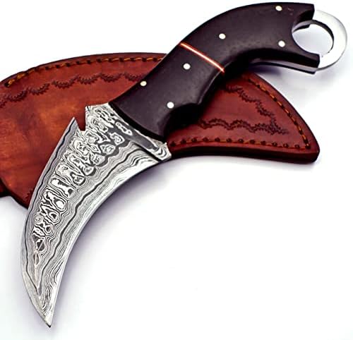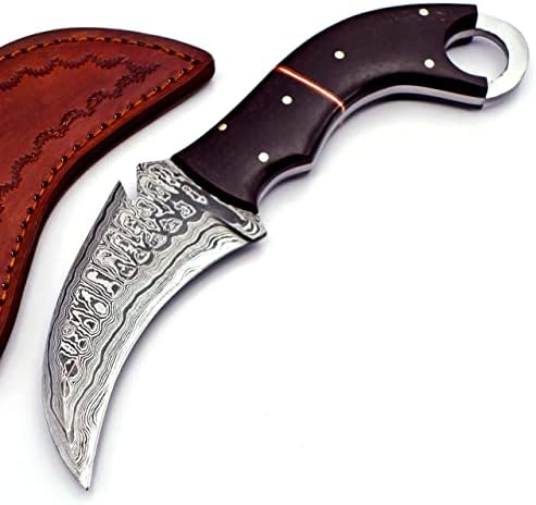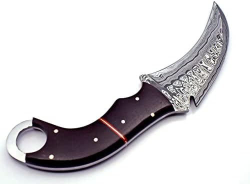 The TR-961 Handmade Damascus Karambit Knife is a premium fixed blade knife designed for hunting, survival, camping, and bushcraft enthusiasts. Crafted from hand-forged 1095 Carbon and 15N20 Nickel Steel tempered to 58-60 HRC, this Damascus karambit knife delivers exceptional edge retention, sharpness, and durability for heavy-duty outdoor tasks.