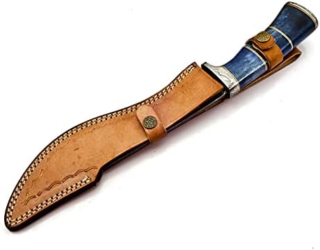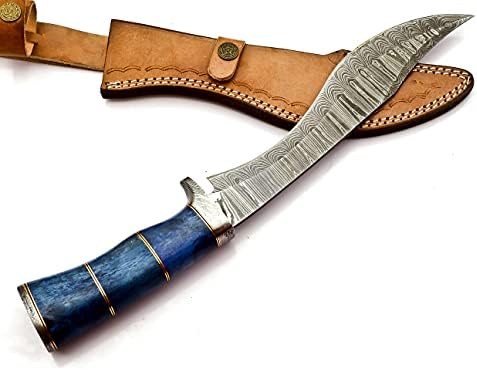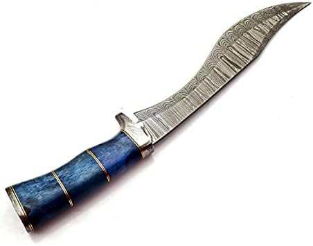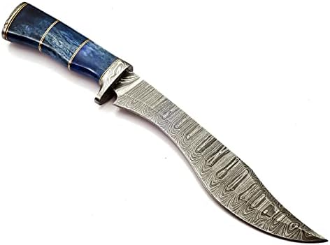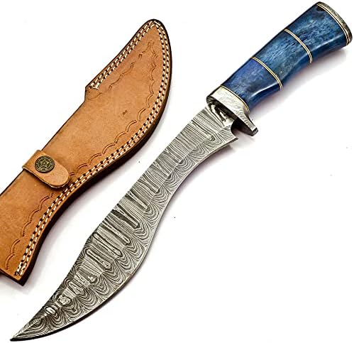 The Handmade Damascus Kukri Knife (MK114) by Nooraki is a masterfully crafted fixed blade knife designed for hunters, campers, and outdoor enthusiasts. Featuring a 10-inch Damascus steel blade and a 5-inch camel bone handle, this knife offers superior sharpness, balance, and durability for a wide range of outdoor applications.