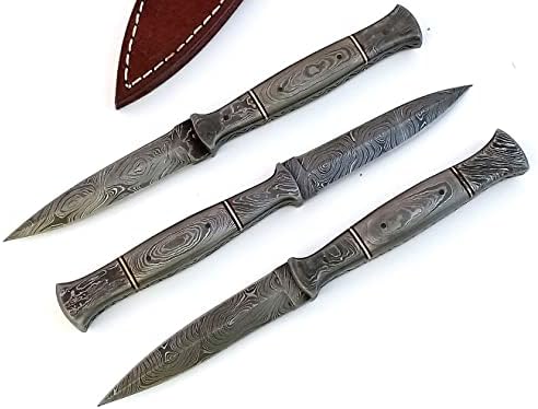 The Handmade Damascus Steel Hunting Dagger is a precision-crafted, full tang knife designed for hunters, campers, anglers, and outdoor enthusiasts. Its hand-forged Damascus steel blade ensures exceptional sharpness, durability, and aesthetic appeal, while the ergonomic handle provides superior control and balance. Ideal for camping, skinning, and survival tasks.