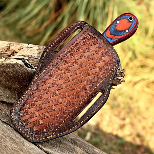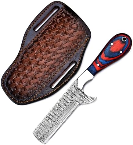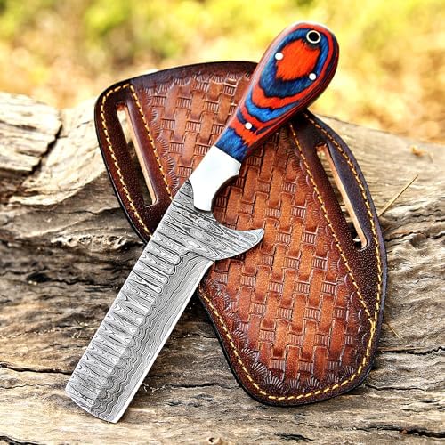 Every knife is handcrafted for uniqueness and performance. The Damascus steel blade exhibits intricate layering patterns, ensuring each piece is one-of-a-kind. Paired with a sturdy Pakka wood handle and custom leather sheath, this premium Damascus knife combines functionality, durability, and collectible value.