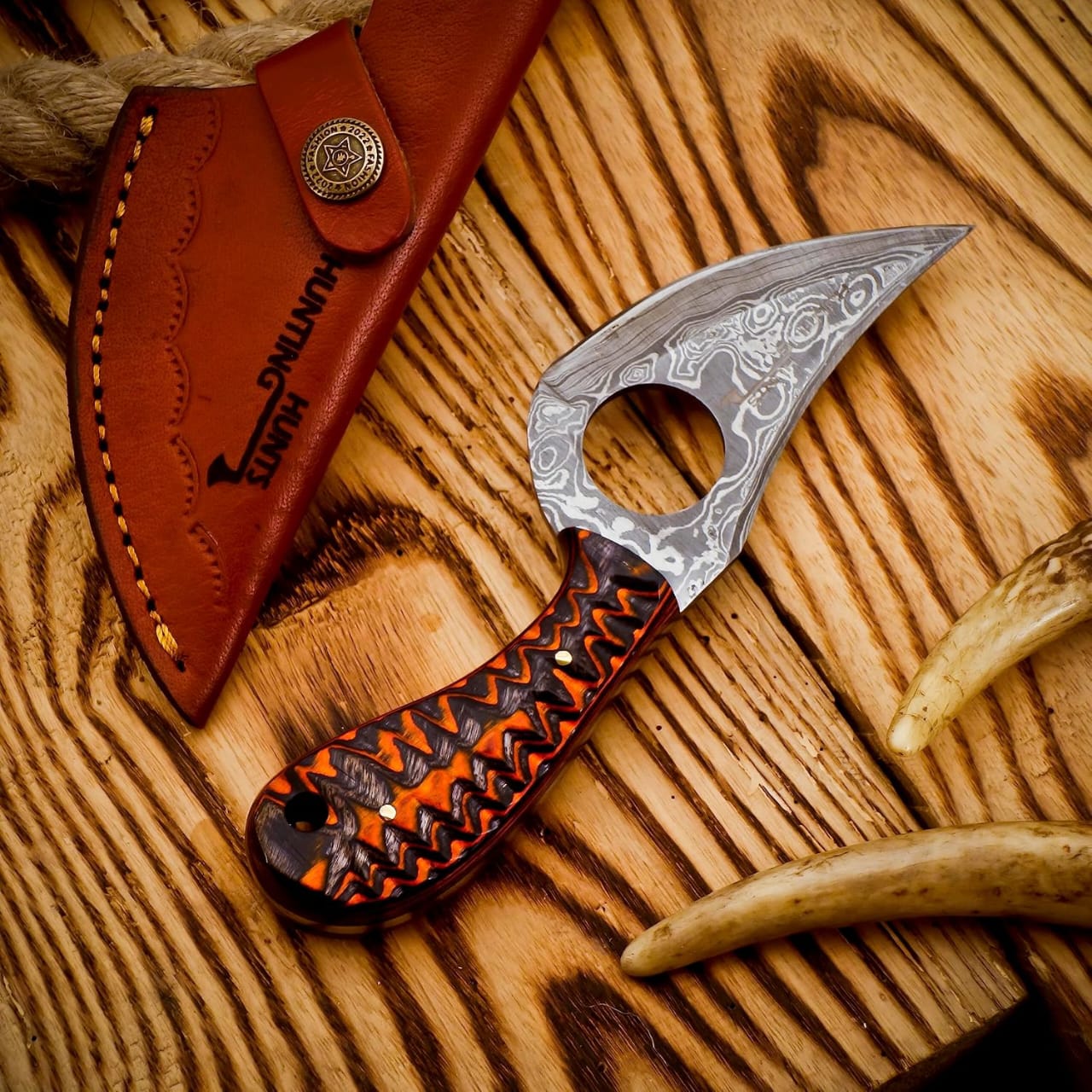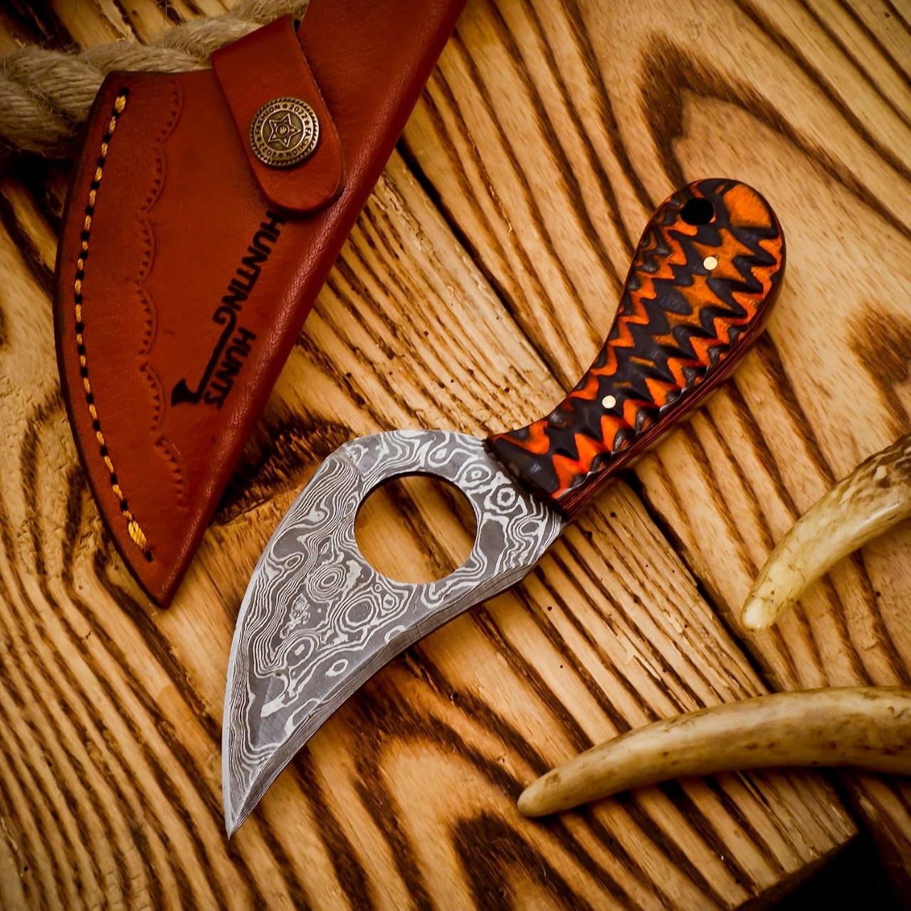 🛡 Handmade Leather Sheath: Includes genuine hand-carved leather sheath with snap fastener and belt loops.