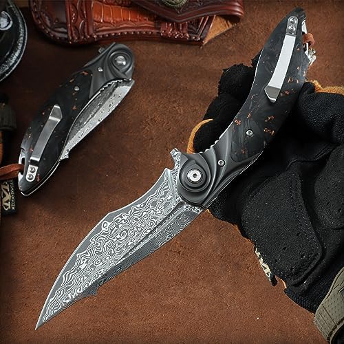 Handmade Folding Pocket Knife 3.9in Damascus Blade Carbon Fiber | Markhor Knives