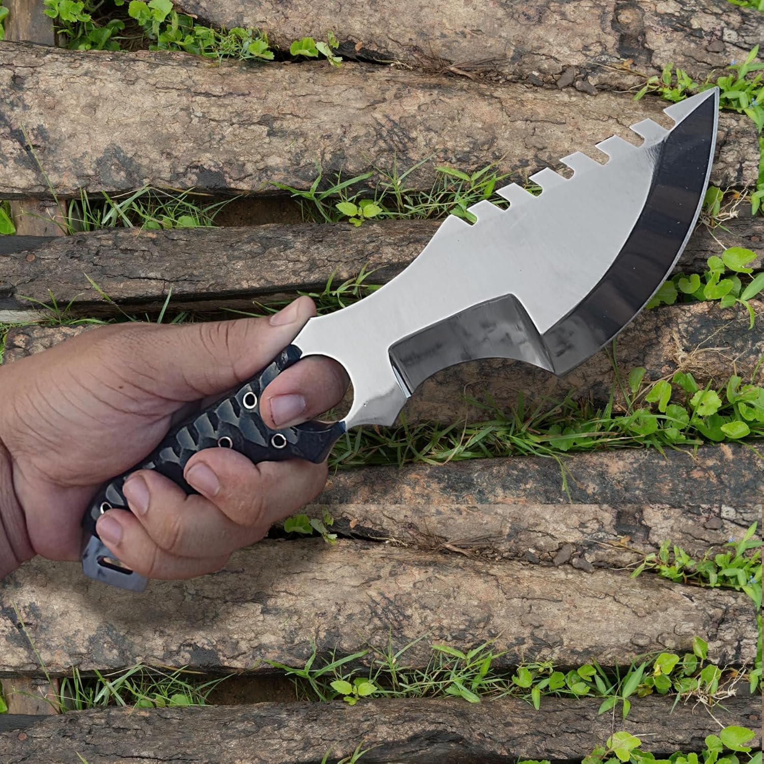This tracker knife delivers unmatched performance in outdoor conditions. The high-carbon steel blade retains its sharpness for precise cutting, skinning, or woodwork. The saw-back spine adds functionality for camping tasks, while the full tang construction provides balance and strength during extended use.