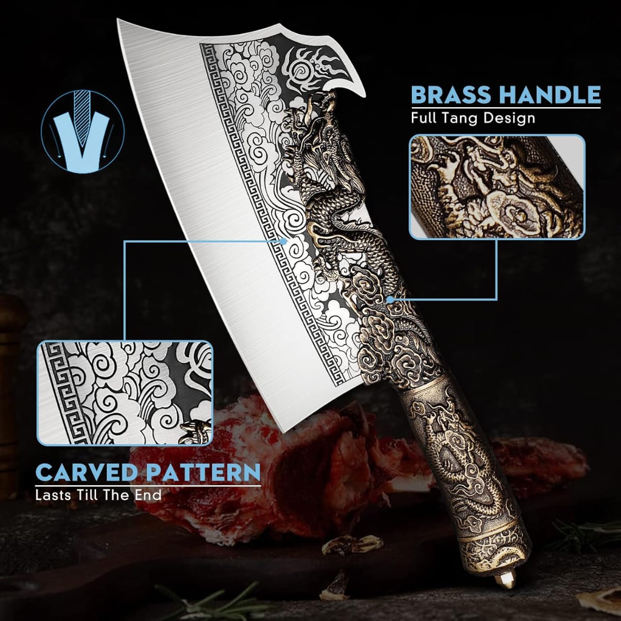 Unique laser-carved dragon pattern on the blade that never fades