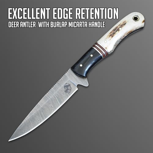 Premium red stag antler handle with burlap Micarta for comfort and secure grip