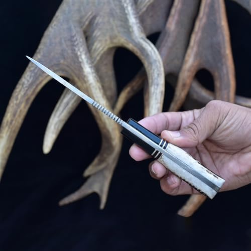 This knife delivers precision cutting and reliable edge retention in any outdoor situation. Its full tang construction provides superior strength for field tasks, while the ergonomically designed antler handle ensures comfort and control. Ideal for hunters, campers, and bushcraft enthusiasts seeking a versatile, long-lasting tool.