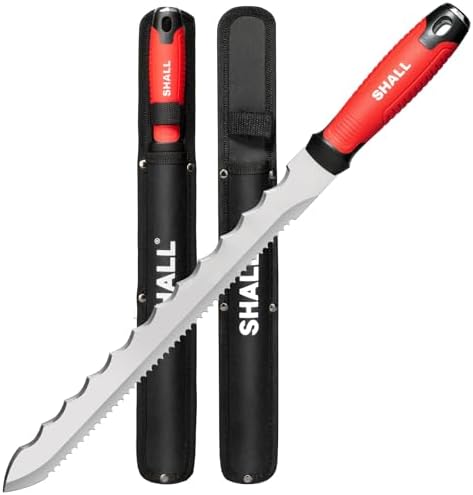 The insulation cutter is a versatile tool designed for precision cutting of foam, rockwool, styrofoam, fiberglass, and other heat-insulating materials. Its dual-sided serrated stainless steel blade ensures clean, smooth cuts while also serving as a robust garden knife for sod, bamboo, grass, and rope.